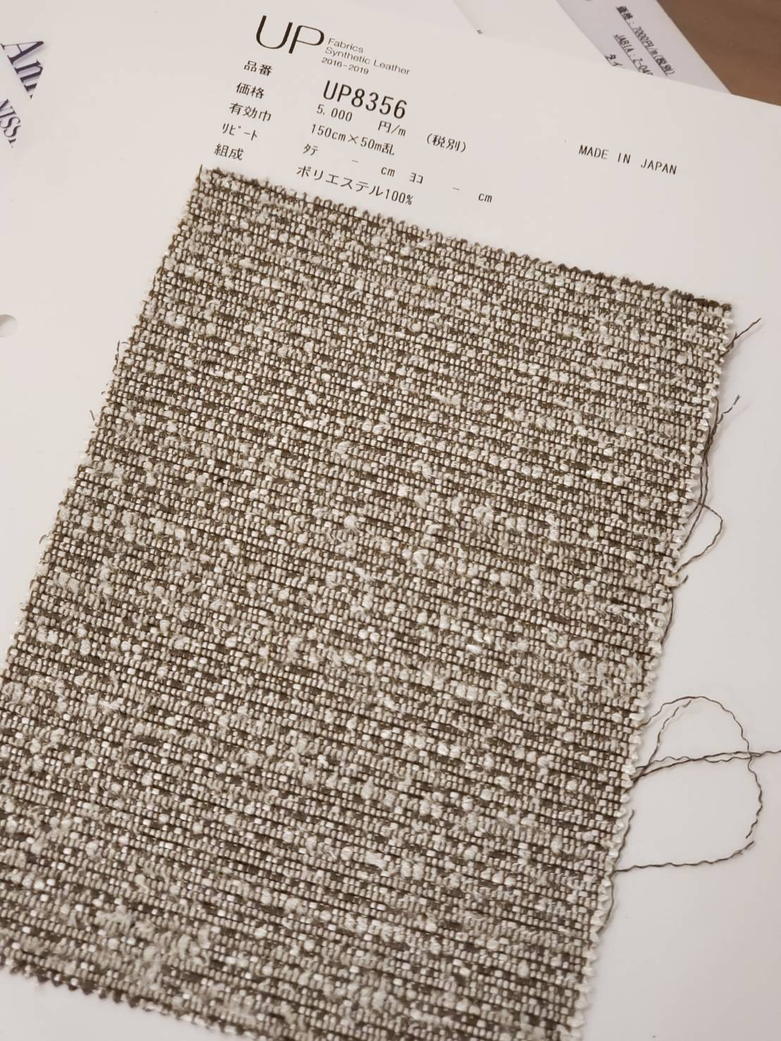 日本製でしっかりとした生地です。サンゲツのガラパゴスというシリーズの明るいグレーUP8356の椅子生地です。