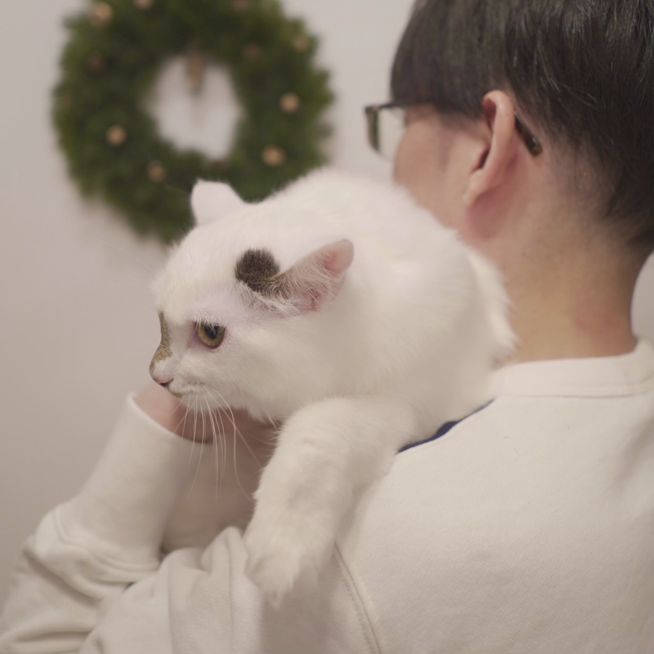 獣医さんにおデブ認定されてダイエット中なのだが、なかなか運動してくれない困ったちゃん。「白豚さん」と愛情をこめて呼ぶことがあるほどムチムチもちもちボディの持ち主で、抱き心地がやみつきになる。